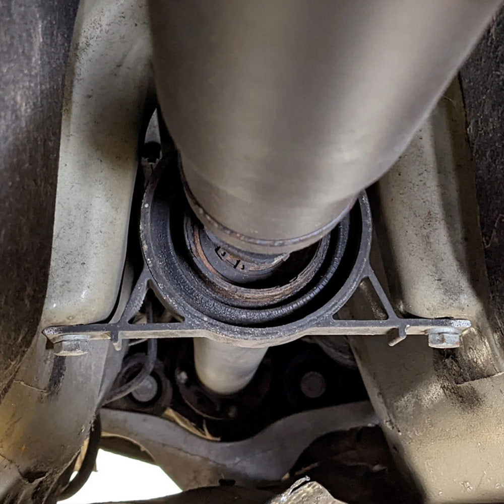 Die Montage ist denkbar einfach: Das zweiteilige Design umschließt das serienmäßige Lager ohne Ausbau der Kardanwelle. Lediglich der originale Träger muss entfernt werden – dafür wird ein Schneidwerkzeug benötigt.