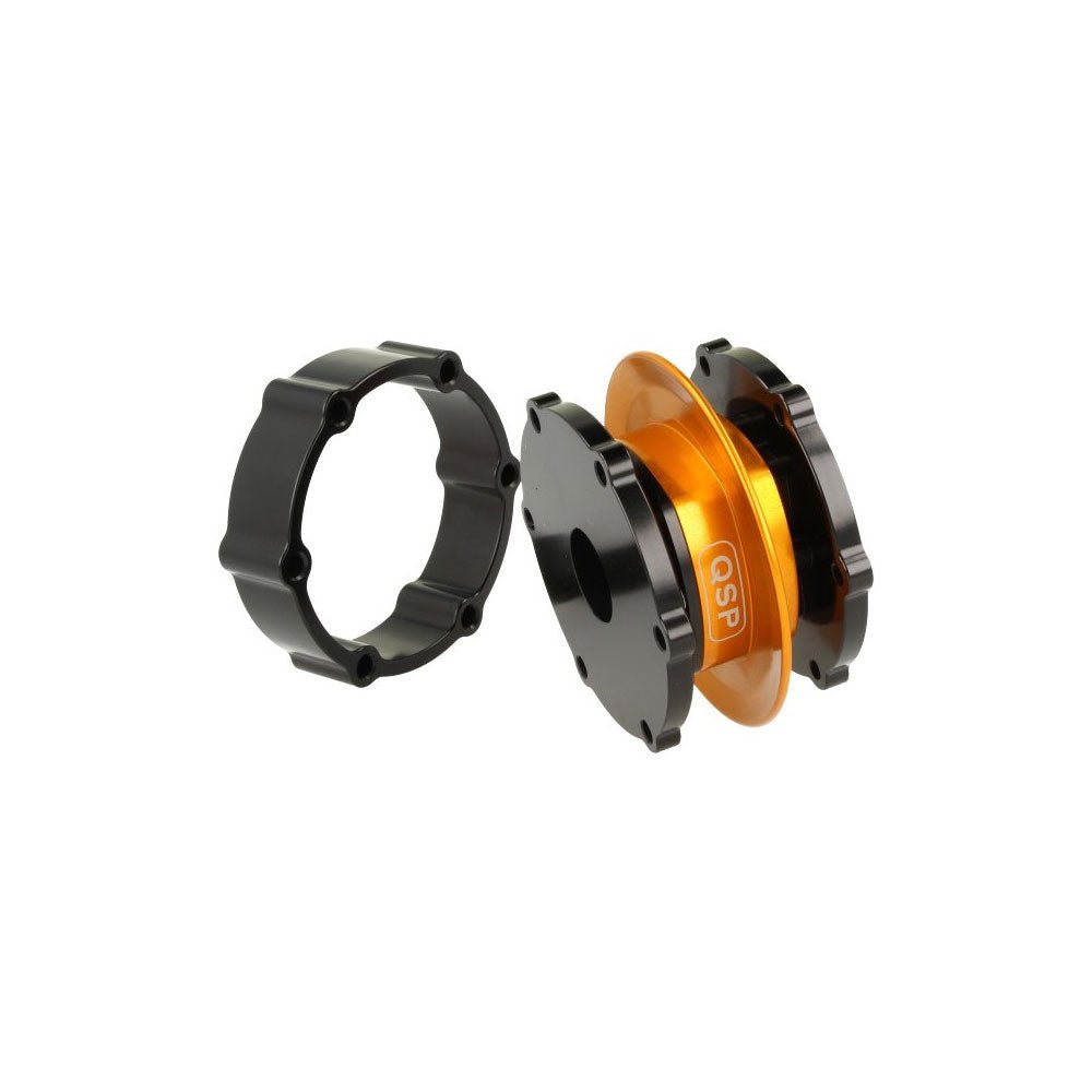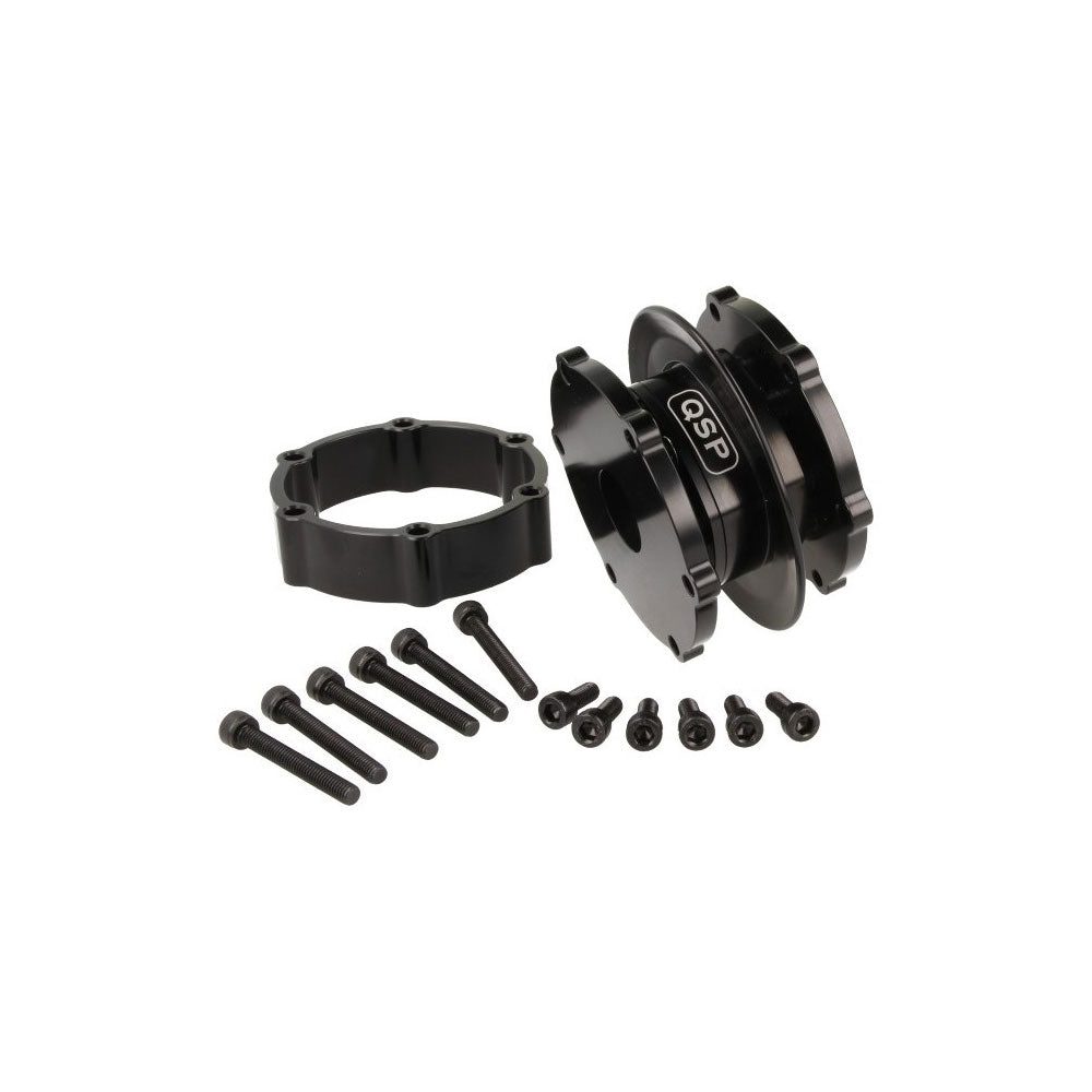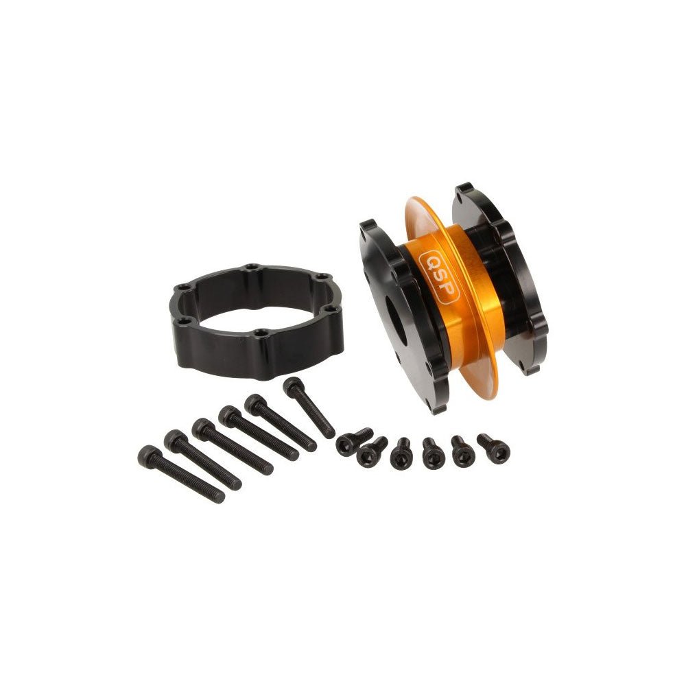 Das Quick Release besteht aus einer Nabenplatte und einem Lenkradverschluss. Die Nabenplatte wird auf die Nabe und der Lenkradverschluss auf das Lenkrad geschraubt. Es sind keine Schweiß- oder sonstige irreversible Arbeiten an den Bauteilen der Lenkung notwendig.