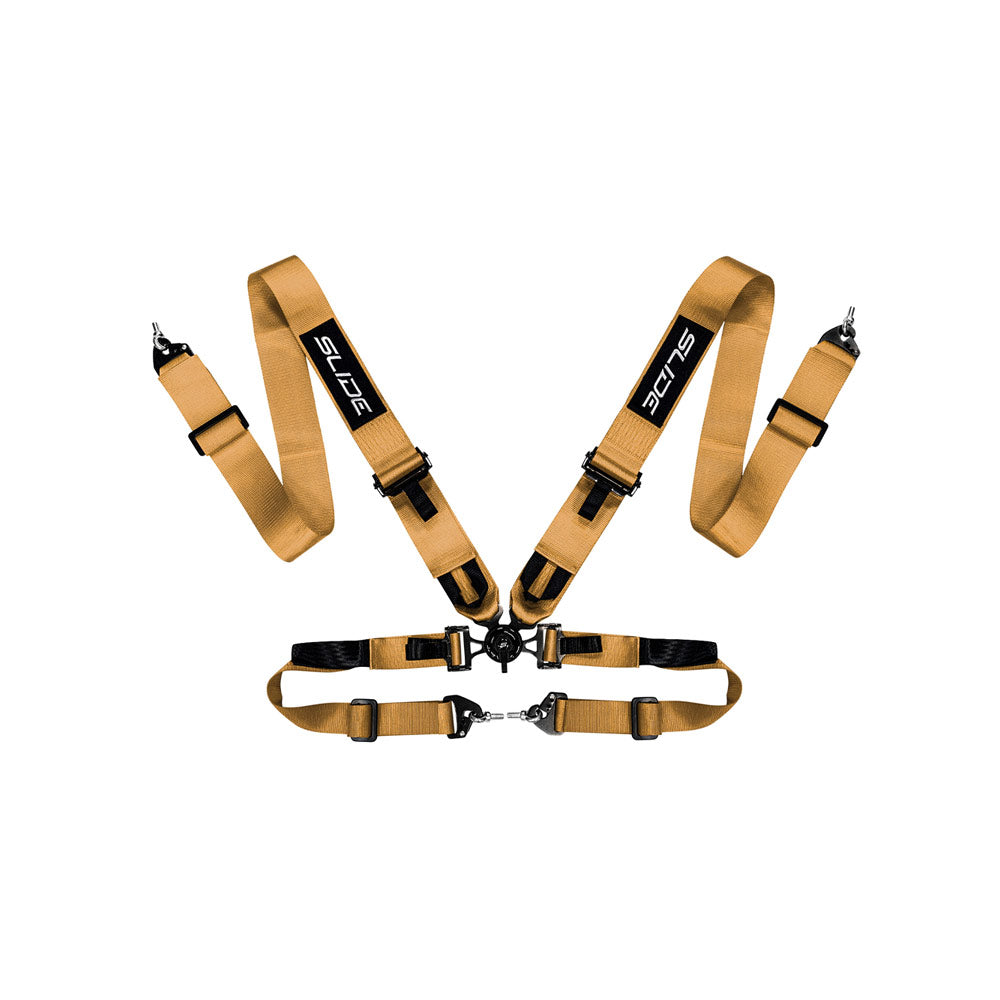 Der SLIDE V2 4-Punkt Sicherheitsgurt in edlem gold kombiniert Motorsport-Performance mit funktionalem Design. Ob auf der Rennstrecke oder im ambitionierten Performance-Fahrzeug – dieser Gurt hält dich dort, wo du hingehörst: fest im Sitz.