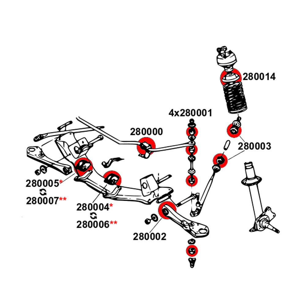 STRONGFLEX Buchsen Set passend für Nissan 240Z S30 Vorderachse & Hinterachse (PU)